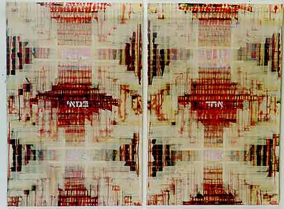 ללא כותרת, מיכל נאמן, מסקינג טייפ וצבע שמן על בד, 1999