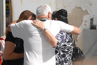 בני משפחתו של אברמוב בפתח ביתו. מתקשים לעכל (צילום: ירון ברנר)