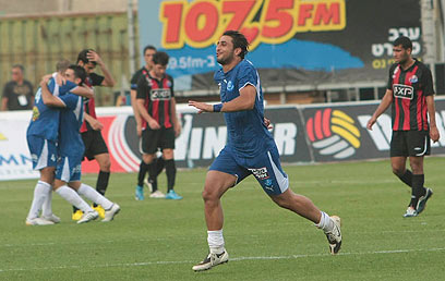 אלנתן סלמי והחברים חוגגים לאחר הניצחון (חגי אהרון)