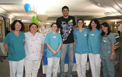 עומרי כספי עם צוות בית החולים: "זו זכות גדולה להגיע לפה" (אורן אהרוני)