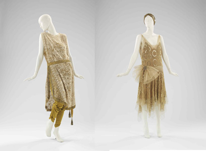 מימין: בגד לערב של Jeanne Lanvin משנת 1923; בגד לערב של Callot Soeurs משנת 1910 (מתוך התערוכה. הצילומים באדיבות מוזיאון המטרופוליטן)