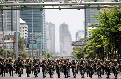 חיילים במרכז בנגקוק. ירו כדורי גומי (צילום: רויטרס)
