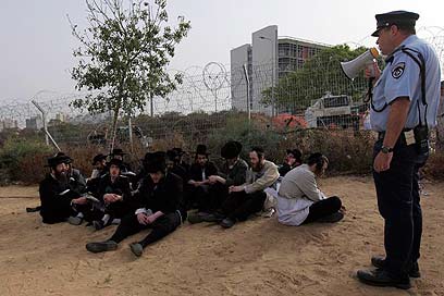 מאז שעות הבוקר המוקדמות, אז החלו עבודות החפירה במתחם הקברים, עברה מחאת המתנגדים למהלך בשקט יחסי. המשטרה עיכבה לחקירה 15 חרדים שהגיעו בקבוצה של 30 איש לאזור בית החולים במטרה להפגין שם במקום את התנגדותם להחלטה. מאוחר יותר הגיעו כמה מפגינים גם לבית ספר סמוך, קראו קריאות והפריעו לתלמידים במקום.
