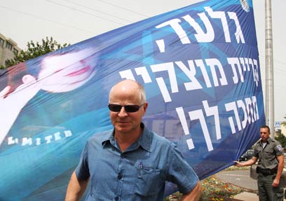 נועם שליט על רקע הדגל (צילום: אבישג שאר-ישוב)