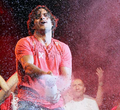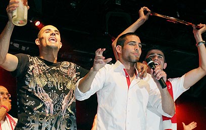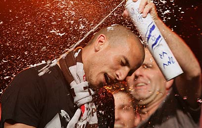אביחי ידין זוכה למקלחת של קצף (אלי אלגרט)