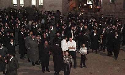 החרדים מוחים. צעקו "קברי ישראל אינם הפקר" (צילום: נועם מושקוביץ)