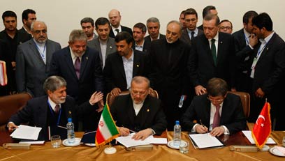 התיווך הברזילאי והטורקי בניסיון למנוע את החרפת הסנקציות הבינלאומיות על איראן - נושא פרי. טהרן הסכימה להעביר 1,200 קילוגרמים מהאורניום שבידה להעשרה בטורקיה, בתמורה למוטות דלק להפעלת כור המחקר בטהרן. גורמים בישראל: איראן תמרנה את טורקיה וברזיל. זה הסכם למראית עין