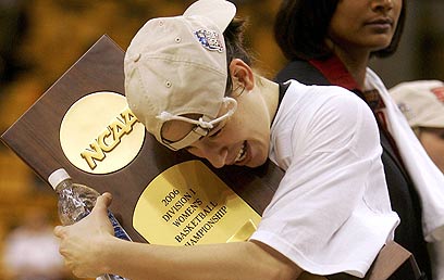 קבלנית תארים. שי דורון עם גביע ישן שכבר בארון (צילום: גטי אימג'ס)