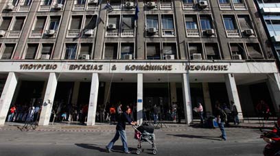 מפגינים מחוץ למשרד העבודה היווני. המשטרה לא התערבה (צילום: AP)