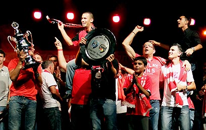 עכשיו המטרה היא ליגת האלופות. חגיגות הדאבל (צילום: אלי אלגרט)