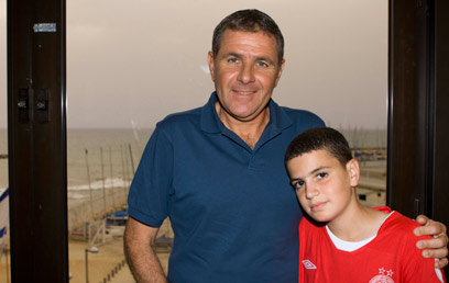 גוטמן ובנו. "גם עם השחקנים זה כמו אבא וילדים" (צילום: עוז מועלם)