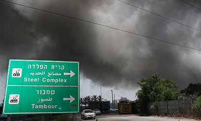 סביבות המפעל, אתמול. העשן החל להתפזר (צילום: שי וקנין)