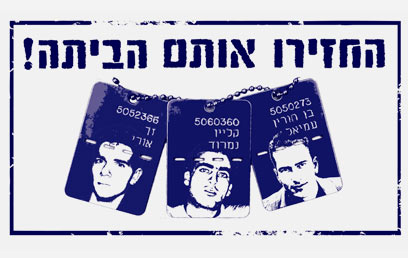 מבטי תמיהה ותיעוב אל השלט הנושא את שמותיהם של החטופים