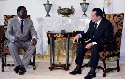 מצרים מעבירה הילוך בסוגיית משבר הנילוס: נשיא מצרים, חוסני מובארק, נפגש היום (א') עם ראש ממשלת קניה, ריילה אודינגה, על רקע המשבר הדיפלומטי המעמיק בין מצרים וסודן לבין מדינות אגן הנילוס, אשר חתמו לאחרונה ביניהן על הסכם המתיר להן לבצע עבודות שיתאמו את אספקת צרכי המים לאזרחיהן.