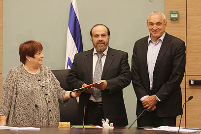 אהרונוביץ' ואזולאי מקבלים את הדו"ח, הבוקר (צילום: גיל יוחנן)