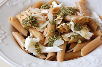 פסטה ברוטב פסטו נענע עם מוצרלה ושקדים קלויים
