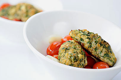 קבב דג על קונפי עגבניות שרי