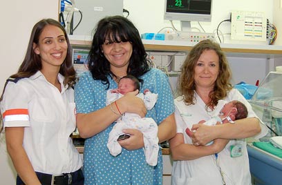 ספיר, התאומות הטריות, המיילדת והפארמדיקית (צילום: באדיבות קפלן)