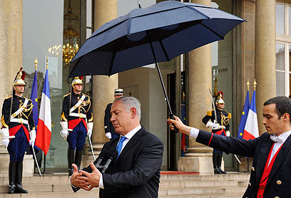 נכנסים מתחת למטריית ה-OECD. נתניהו בארמון האליזה (צילום: רויטרס)