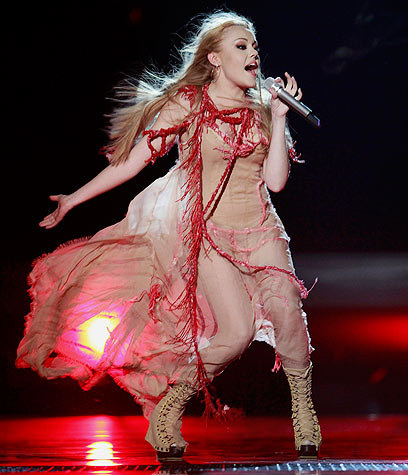 ואם בכלולות עסקינן, הרי שהזמרת הפורטוגלית הגיעה מוכנה היישר לחופה. אמנם את השמלה שלה לא היתה מאחלת המעצב(נ)ת לשום כלה, בשל היותה דומה למטפחת אף ענקית (שהיתה בשימוש מסיבי) מעל לכמות שיפון שיכולה להספיק לחמש שמלות. אבל אין ספק שמדובר בתצוגה שונה משהו משאר הבחירות המוזרות.