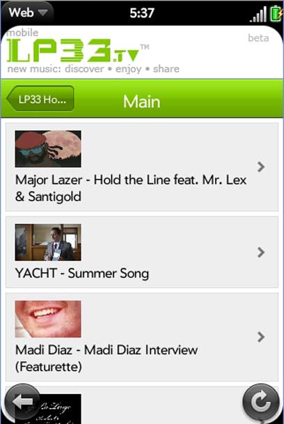 אפליקציה של אתר LP33.tv, שהוא למעשה מעין ערוץ VOD לקליפים ותכניות מוזיקה. האפליקציה מאפשרת לצפות בקליפים, קטעי וידאו, ראיונות ותכניות שונות המסודרות לפי ערוצי תוכן וסגנונות שונים, ואף ליצור רשימות צפייה משלכם. מומלץ בחום לאוהבי מוזיקה. גרסת הקושחה (firmware) של המכשיר צריכה להיות עדכנית כדי לאפשר את כל הפונקציות האפשריות.