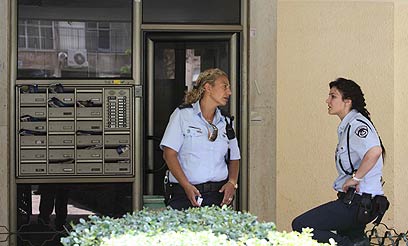 רצח בפתח הבית. שוטרות בזירת הרצח בנתניה (צילום: עידו ארז)