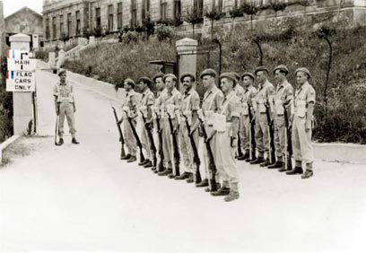 1. מלחמת העולם השנייה הסתיימה, וקבוצת חיילים מהחטיבה היהודית במחנה בהולנד, מתרגלת מסדר כבוד לקראת ביקור הפלדמרשל מונטגומרי