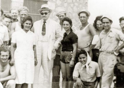 7. 1947, ביקור חיים ויצמן את מתיישבי רמות נפתלי זמן קצר לפני מלחמת העצמאות. לידו נראה צבי באום