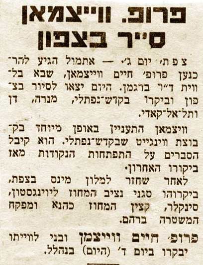 8. ההודעה בכרוניקה על ביקור ויצמן