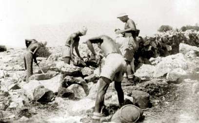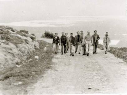 10. הדרך היחידה שקישרה את רמות נפתלי עם היישוב העברי, ירדה לכיוון עמק החולה. הדרך עברה ליד בניין המשטרה הבריטית - מצודת ישע. בתצלום חברי ארגון ווינגייט עולים לביקור ראשון ברמות נפתלי