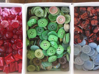 כפתורים צבעוניים בקופסאות. חנות הכפתורים ברחוב בן יהודה