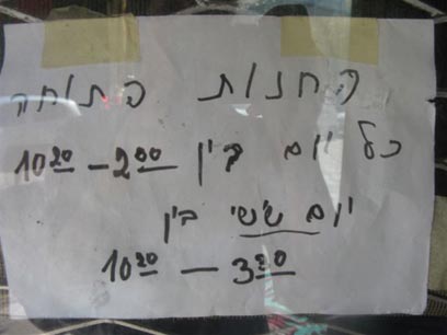 שלט על הדלת בחנות הכפתורים. גם השלט של פעם