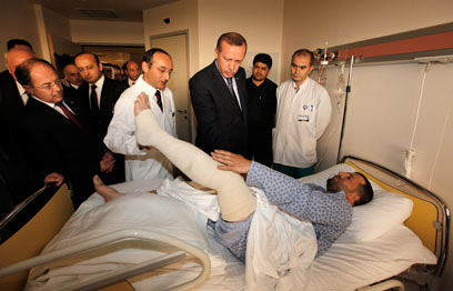 ארדואן עם אחד מפצועי ההשתלטות על ה"מרמרה" (צילום: רויטרס)