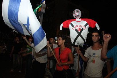 פעילי ימין נושאים בובת ר"מ טורקיה (צילום: עופר עמרם)