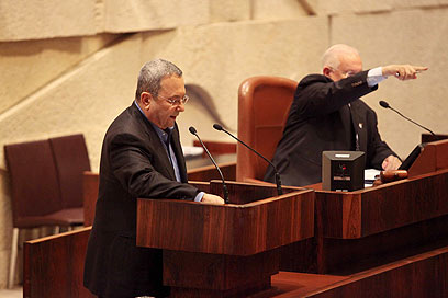 ברק נואם, ריבלין מרגיע את קריאות הביניים (צילום: נועם מושקוביץ)