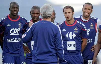 שחקני צרפת והמאמן דומנק באימון (AFP)