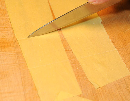 מדפי הבצק המוכנים אנחנו מכינים את צורת הפסטה הרצויה לנו. אפשר לחתוך בעזרת סכין, במכונת הפסטה, או בעזרת אביזרים מיוחדים. לאחר מכן מייבשים את הפסטה על מגבת מטבח או בתלייה (אפשר בעזרת מכשיר מיוחד ואפילו על מתלה לייבוש כביסה!).