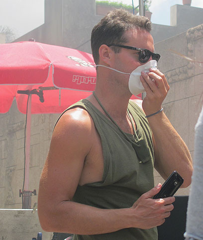 שפעת החזיזים. אנחל בונני מתגונן מניחוח שריפת הצמיגים