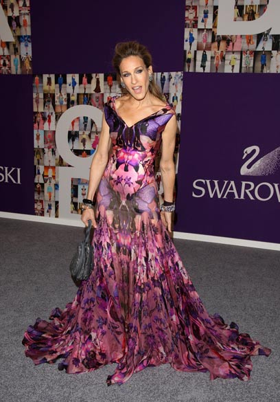 עוד אחת שיוצאת מהגבולות היא שרה ג'סיקה פרקר, שבחרה בסוג של הדפס נמרי מהזן החדש, בגוונים של סגול-ורוד. המעצב(נ)ת לא ממש רואה את הנמר, אלא יותר פרפר גדול שנדבק לה לשמלה, אבל מבט מרחוק על התפרחת הכללית מזהה משהו מהטבע, אז אולי באמת מדובר בנמרה שהתחפשה. מה שכן, לא היה שום צורך להפוך את השמלה למשהו מגוחך בעזרת החלק התחתון שעושה את פרקר נמוכה יותר, מעניק לוק פְרֵחי-צועני, ובאופן כללי, ושוב במבט מרחוק, למשהו מפחיד קצת.