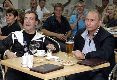 היו ימים. פוטין ומדבדב נהנים ממשחק כדורגל (צילום ארכיון: רויטרס)