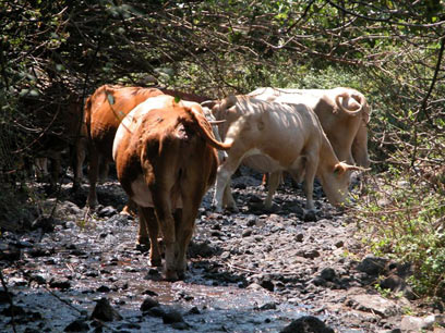 כאן, עוד לפני העיקול, קיימת אפשרות לפרוש מהדרך המסומנת לעבר בריכת מים קטנה ופחות ידועה. לשם כך צריך לעבור את גדר הבקר (2) התוחמת את הדרך מימין ולעלות על דרך המקבילה לערוץ הנחל. הולכים כמאה מטר במורד הדרך ועם עיקולה שמאלה פורשים ממנה, בין שני סלעים גדולים, לטובת שביל עזים היורד לכיוון הצמחייה שעל גדות הנחל.
