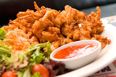 המנה האחרונה שבחרתי היא וריאציה ענקית - בקנה מידה אמריקאי - לטבעות הבצל המסורתיות. אצלנו קוראים לה קפיטל היל - מפאת הכבוד הכפול לבירת הדמוקרטיה האמריקאית ולצורת הגבעה הענקית בה היא מתפארת.