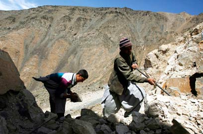 אפגנים חוצבים איזמרגד בעמק פנג'שיר (צילום: רויטרס)