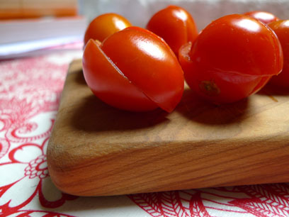 500 גרם עגבניות שרי בשלות, שטופות וחצויות