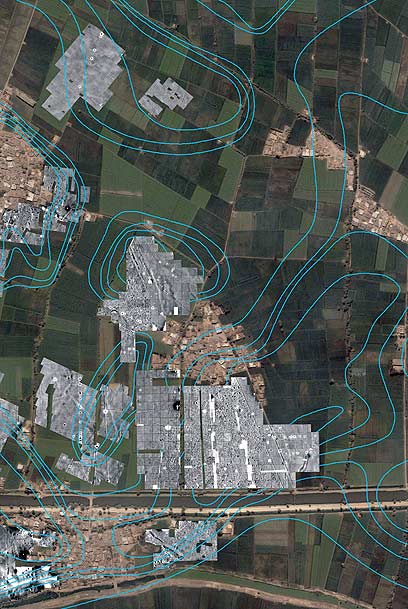התמונה שהושגה באמצעות המכ"ם מראה את קוי המתאר של הרחובות, הבתים והמקדשים שנמצאים היום מתחת לשדות חקלאיים ולעיר המודרנית של תל אל-דאבא (Tel al-Dabaa).