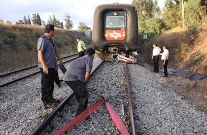 הרכבת גררה את הטנדר לאורך 800 מטר (צילום: עידו ארז)