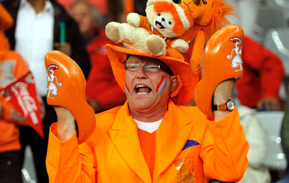 מזל שהם ממשיכים איתנו לשמינית הגמר. אוהדי נבחרת הולנד (AFP)