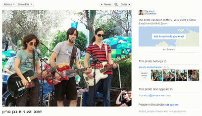 עמוד תצוגת התמונה הורחב במעט, עם אפשרות לצפות בגירסה מוגדלת של התמונה על גבי רקע שחור בקליק. הכותרת הוצמדה לתיאור התמונה מתחתיה. והמידע הנוסף רוכז בצד ימין - היכן התמונה צולמה, באיזו מצלמה, מי מופיע בה, מה התגיות שלה ועוד.