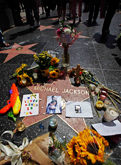 הפרחים והנרות בשדרות הכוכבים בהוליווד (צילום: AP)