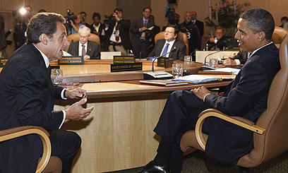 ביקורת סביב אותו השולחן. אובמה וסרקוזי בקנדה (צילום: AFP)